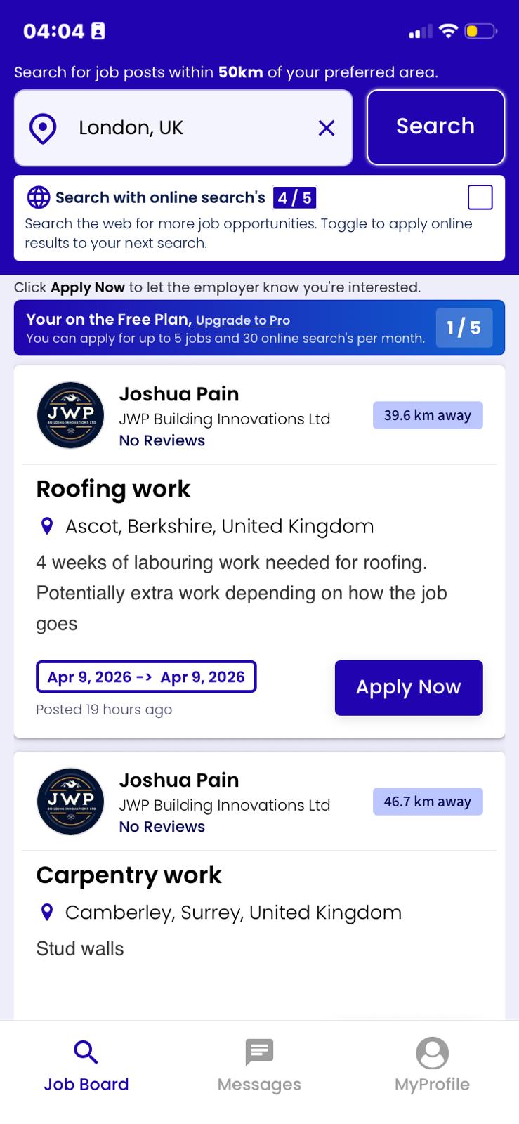 Post jobs, find available labourers near your site, and message candidates directly. myLabourer makes it simple to get the help you need, fast — without agency fees or delays.